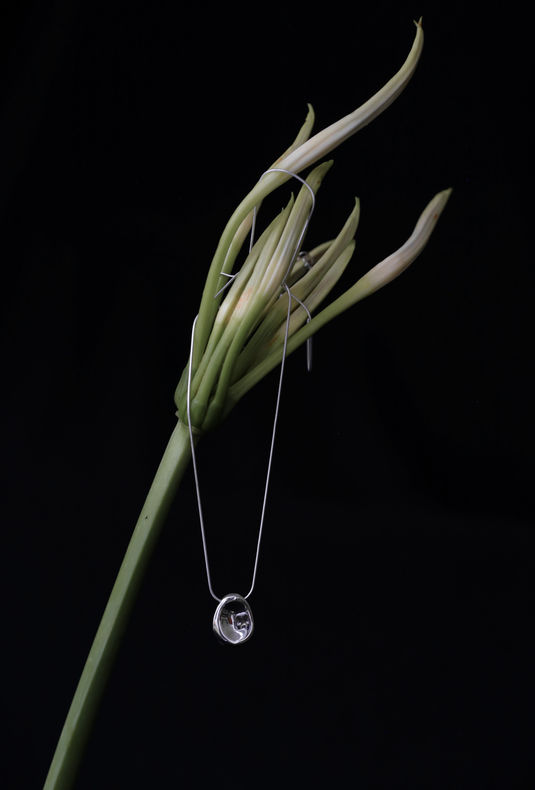 POND necklace inspired by how drops of dew collect andform a pool of light, glimmeringin their beds of ponds creeping underneath the ground